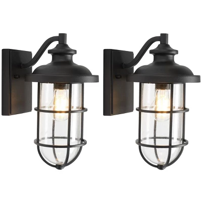 Illuminate your outdoor spaces with the Adelle 8.5 inch black steel and glass wall sconce set. These elegantly designed sconces offer a touch of modern charm to any exterior setting. Crafted from durable metal, each piece in this set of two features a sleek black finish that adds sophistication and style to your home. The combination of steel and glass creates a harmonious balance of strength and elegance, perfect for enhancing the ambiance of your patio or garden.Easy to install and versatile, the Adelle sconces provide not only functional lighting but also an aesthetic appeal that complements a variety of architectural styles. Whether hosting evening gatherings or enjoying a quiet night under the stars, these outdoor wall sconces will elevate your exterior decor effortlessly. Enhance your home’s outdoor lighting with the Adelle wall sconce set and experience the perfect blend of form and function.