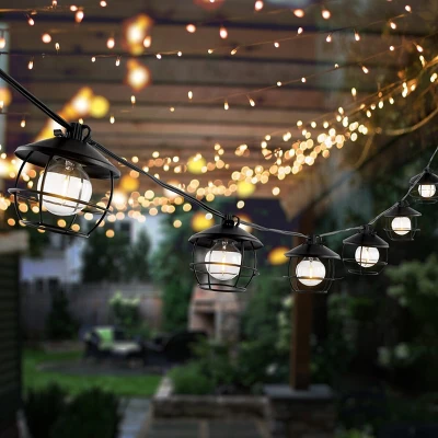 Transform your outdoor space with the Agitha 10 light string set. Stretching 120 inches, this stunning setup seamlessly blends black metal, glass, and plastic to create a unique ambiance for your garden or patio. Each bulb delicately encased within a modern design adds a touch of elegance and warmth to any gathering. Perfect for evenings under the stars or lively outdoor parties. The durable construction withstands weather elements, making these lights a reliable choice for your exterior decor. Enjoy the black finish that complements any setting, whether contemporary or rustic. Illuminate your nights with style and simplicity, turning ordinary spaces into extraordinary experiences. With easy installation and versatile placement, the Agitha string light set is your go-to solution for enhancing outdoor living areas.