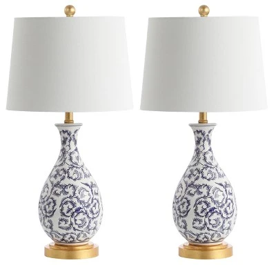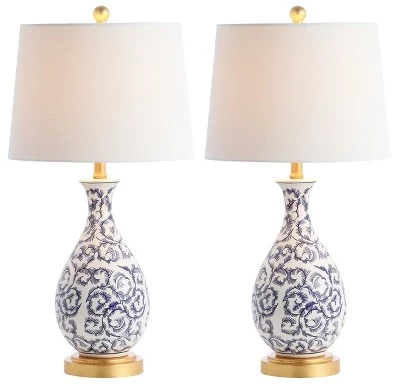 A treasured vase in a museum collection inspired this classic table lamp. Crafted with exceptional care, its luxurious blue and white ceramic design and rich gold leaf finish transforms any living room. Its off-white 100% cotton shade is complimentary. Care Instructions: Before cleaning any lamp shade or fixture, disconnect the power source. Wipe with a soft, dry cloth. Avoid the use of chemicals and household cleaners as they may damage the finish.