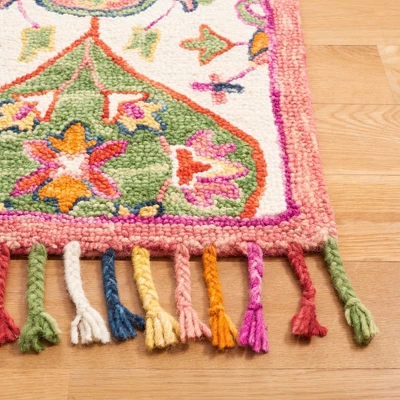 The floral rugs of the Blossom Collection are bold, colorful updates of classic hooked rugs. Made using large hand woven loops, the texture of Blossom rugs inspires a fresh approach to country casual interiors. Woven of 100% wool, Blossom area rugs bring traditional English chintz and block print motifs into today’s cultured home decor. Care Instructions: Vacuum Without Beater Bar