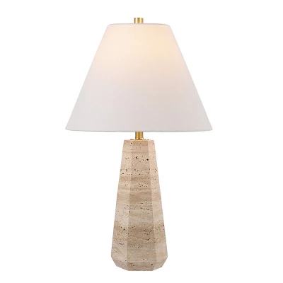 Elevate any room with the serene ambience provided by our Calla Table Lamp. Its travertine�s earthy tones create a calming presence that brings a touch of nature-inspired texture to your home. Its geometric form, paired with a soft fabric shade, creates a balanced aesthetic that is both sophisticated and inviting. Bring this table lamp and let its gentle light and organic charm infuse your living environment with warmth and tranquility. Care Instructions: Before cleaning any lamp shade or fixture, disconnect the power source. Wipe with a soft, dry cloth. Avoid the use of chemicals and household cleaners as they may damage the finish.