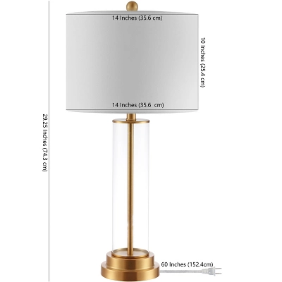 This Cassian Table Lamp embraces classic contemporary design with a nod to Art Deco brilliance. CassianÕs glass cylindrical body encompasses a sleek metal interior and sits atop a layered pedestal base, bringing decorative depth and dimension to any room. Care Instructions: Before cleaning any lamp shade or fixture, disconnect the power source. Wipe with a soft, dry cloth. Avoid the use of chemicals and household cleaners as they may damage the finish.