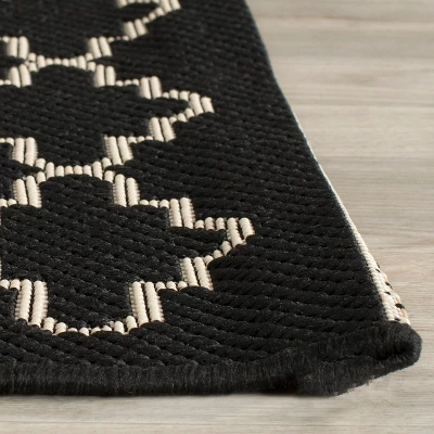 Elevate your space with the striking contrast and sophisticated design of our 2′ X 3′ 7″ accent area rug. Crafted with impeccable attention to detail, this rug showcases a dynamic black and beige color palette, making it a versatile addition to any interior or exterior setting.The intricate pattern, visible in the image, delivers a timeless Moroccan inspired motif that adds an exotic touch to your decor, while the 1/4″ pile height provides a sleek profile that’s easy to maintain.Constructed using a power loomed technique, this rug boasts an impressive blend of 88% Polypropylene and 12% Polyester, ensuring durability and long lasting beauty. The high quality fibers deliver a soft, comfortable feel underfoot, making it an ideal choice for high traffic areas.Proudly made in Turkey, this rug embodies the blend of traditional craftsmanship and modern technology, resulting in a product that withstands the test of time. Its Indoor/Outdoor style versatility means you can seamlessly transition it from your living room to your patio, enhancing both settings with its elegant design.This OEKO TEX certified area rug ensures that it’s free from harmful substances, offering peace of mind for you and a safer environment for your family. Add a touch of class and comfort to your home with this exquisite accent rug, a luxurious yet practical piece that will be admired for years to come.