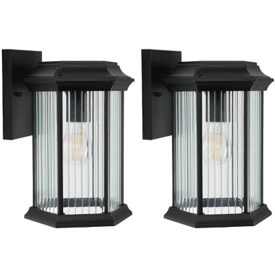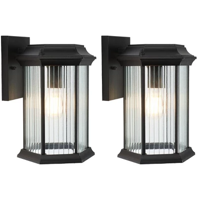 Introducing the Hylan outdoor wall sconce set of two, where style meets functionality. These exquisite 8.46 inch sconces blend seamlessly into any outdoor setting. Their sleek black finish coupled with a striking steel and glass design embodies sophistication. Illuminate your space with elegance as these sconces enhance the ambiance of your exterior. Crafted with durable metal, each sconce is designed to withstand the elements, offering both beauty and reliability. The modern design fits perfectly into any home style, whether contemporary or classic. Easy to install, this set promises to enhance your home’s exterior, adding a touch of charm and allure.Update your outdoor lighting with the Hylan wall sconce set, and let your home shine with unmatched grace. Transform your evenings with warm, inviting light that creates the perfect atmosphere for all your outdoor gatherings. Embrace style and function with this stunning addition to your outdoor decor.