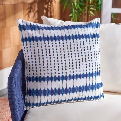 Bring the boundless energy of the ocean to your outdoor décor with the coastal style of the Kenza indoor outdoor pillow. Featuring tonal blue shapes streaming over a clean white background, Kenza’s artistic styling enlivens patio décor with cool colors and decorative balance. Kenza is made using all weather synthetic fabric for vibrant color season after season. Care Instructions: Pillows tend to flatten during transit, but these tips should help you get that pillow into its fluffiest shape quickly!Once unpacked, gently knead the pillow to help loosen the fibers. Throw the pillow in a dryer on a low tumble setting. The most important tip is to include a sock stuffed with a tennis ball to help “beat” the pillow into its fluffy form. Remove from the dryer, and proudly display your new piece of couch art!