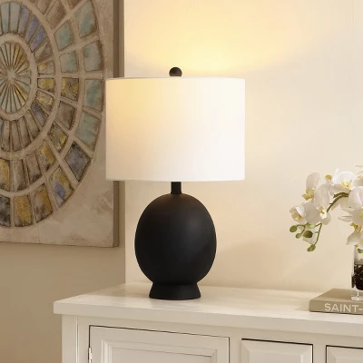 Introducing the Muse 20.5 inch black resin table lamp, a blend of style and functionality that fits beautifully in your space. The elegant black finish of the resin base adds a contemporary touch, while the cotton shade ensures a gentle and warm light. Designed with quality resin and sturdy iron, this lamp stands as a reliable companion for any room. Its compact size makes it versatile for placement on desks, side tables, or nightstands. Elevate your decor with the Muse table lamp and experience the perfect balance of form and function. Add a touch of sophistication to your living area with this chic lighting solution.