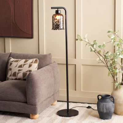 Illuminate your space with the Nezara 58 inch floor lamp, a striking blend of style and functionality. With its black and brown tortoise color palette, this lamp adds a touch of elegance to any room. The metal and glass body offers a sleek design, while the glass shade disperses light evenly, creating a warm ambiance. Whether placed in a cozy corner or as a statement piece in your living room, this lamp fits perfectly with modern and classic decors alike. Its tall, slim profile makes it a versatile choice, effortlessly enhancing your space without overpowering it. Bring home the Nezara floor lamp today and transform your environment with its sophisticated charm.