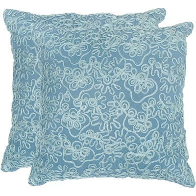 With their sophisticated but romantically feminine design, the Tape Swirl set of two pillows dresses up a sofa or bed in style. Wedgwood blue tape appliques create a textural swirl effect on a cotton cover to create a focal point in transitional rooms. Care Instructions: Dry clean only