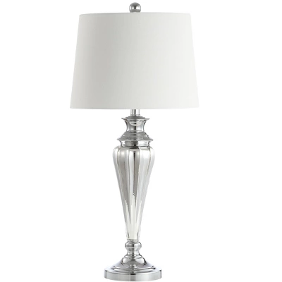 Introducing the Trent 30 Inch Silver Glass Table Lamp. This exquisite piece embodies modern elegance with its sleek silver finish and glass design, making it a perfect addition to any room. The lamp stands at 30 inches, creating a commanding presence that adds both functionality and a touch of sophistication to your decor. The silver color effortlessly complements a variety of interior styles, ensuring it integrates seamlessly into your home or office. Ideal for living rooms, bedrooms, or study areas, this lamp provides ample lighting while enhancing the aesthetic appeal of your space. Illuminate your surroundings with style and grace with the Trent Table Lamp, where beauty meets utility in a seamless blend.