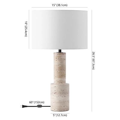 - Accent Table Lamp crafted with Travertine, Iron, Cotton